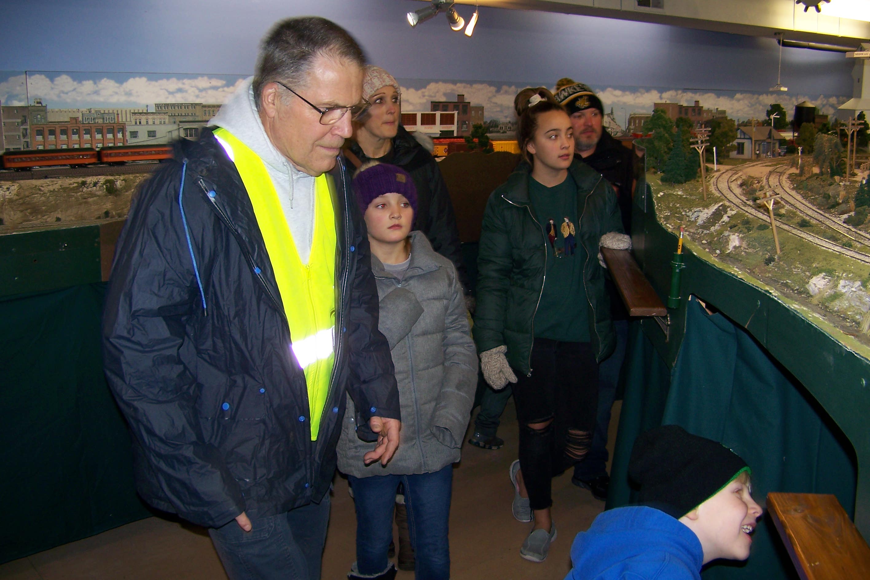 Our own Dr. Jim T guiding some future model railroaders to the dispatch panel.